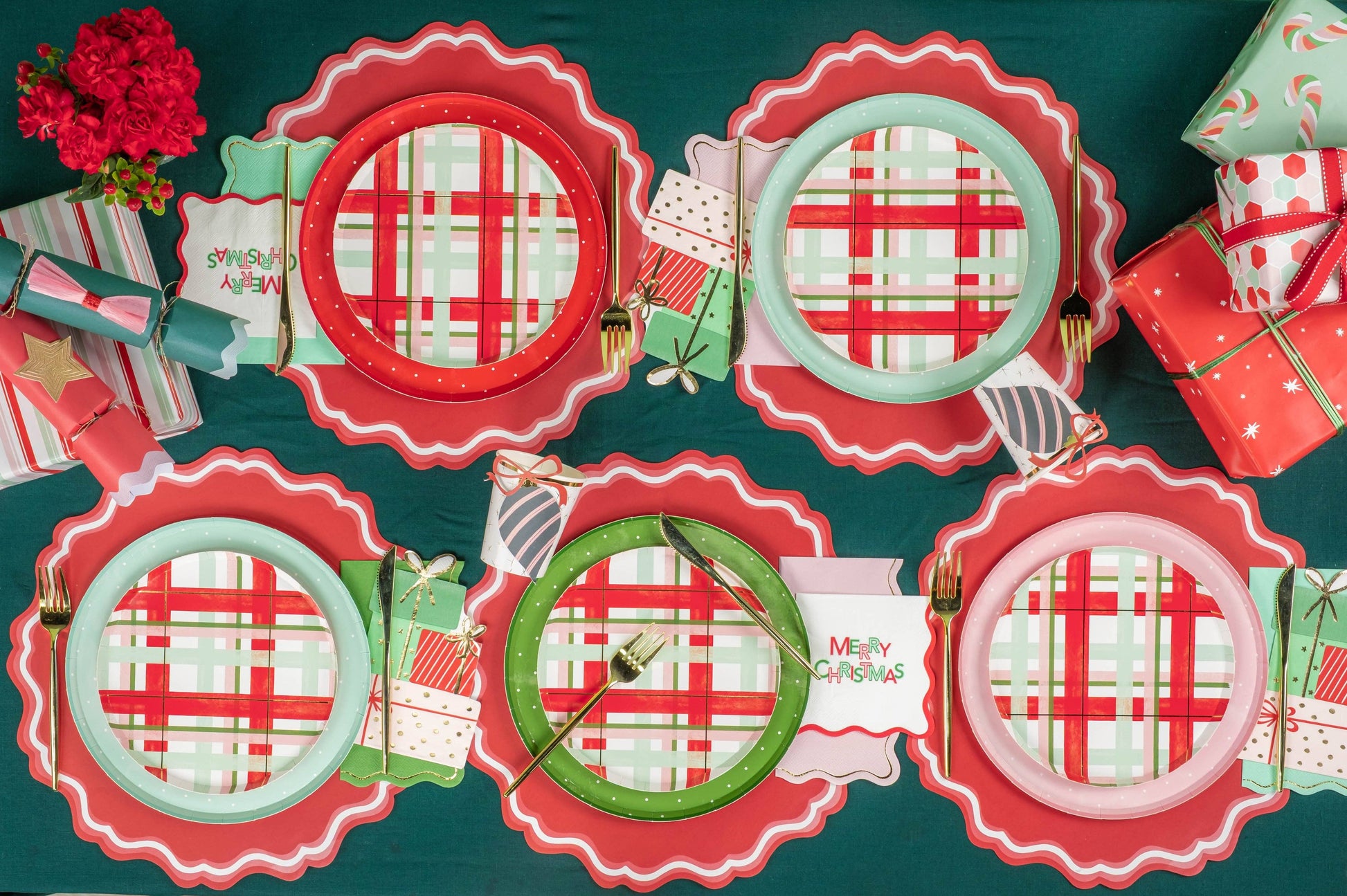 Mix with Cheerful Plaid Plates, holiday dessert plates, or even your gingerbread or toy soldier themes for a fun, festive, and cohesive look!